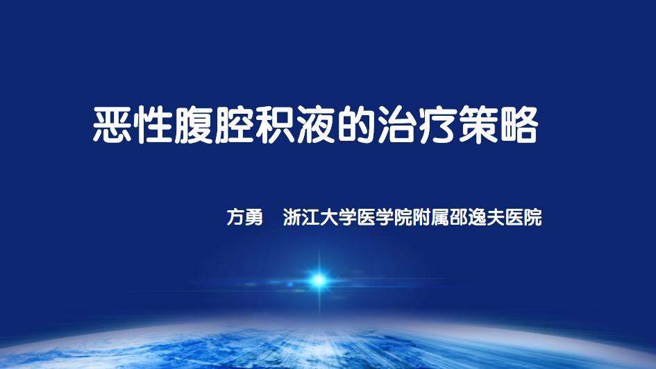 题目:恶性腹腔积液的治疗策略讲者:方勇(浙江大学医学院附属邵逸夫医院来源:北京大学肿瘤医院第五届阳光长城学术会议暨结直肠肿瘤论坛