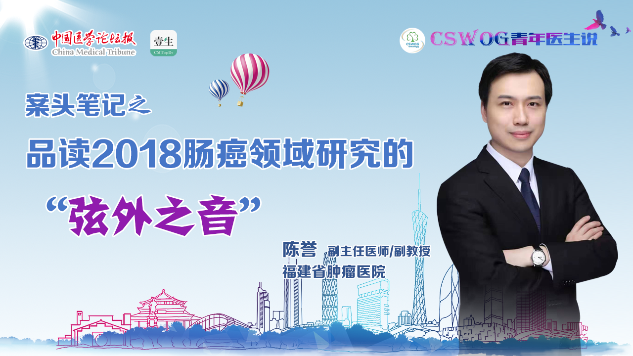 “CSWOG青年医生说”系列是由中国医学论坛报·壹生携手中国南方肿瘤临床研究协会(CSWOG)青年专家委员会共同打造,分章节回顾2018年结直肠癌、肺癌、乳腺癌、淋巴瘤以及免疫治疗方面的研究进展。第一讲由福建省肿瘤医院陈誉医生综述2018年结直肠癌领域的重要研究,探讨这些研究对未来发展方向与临床实践的启示。
