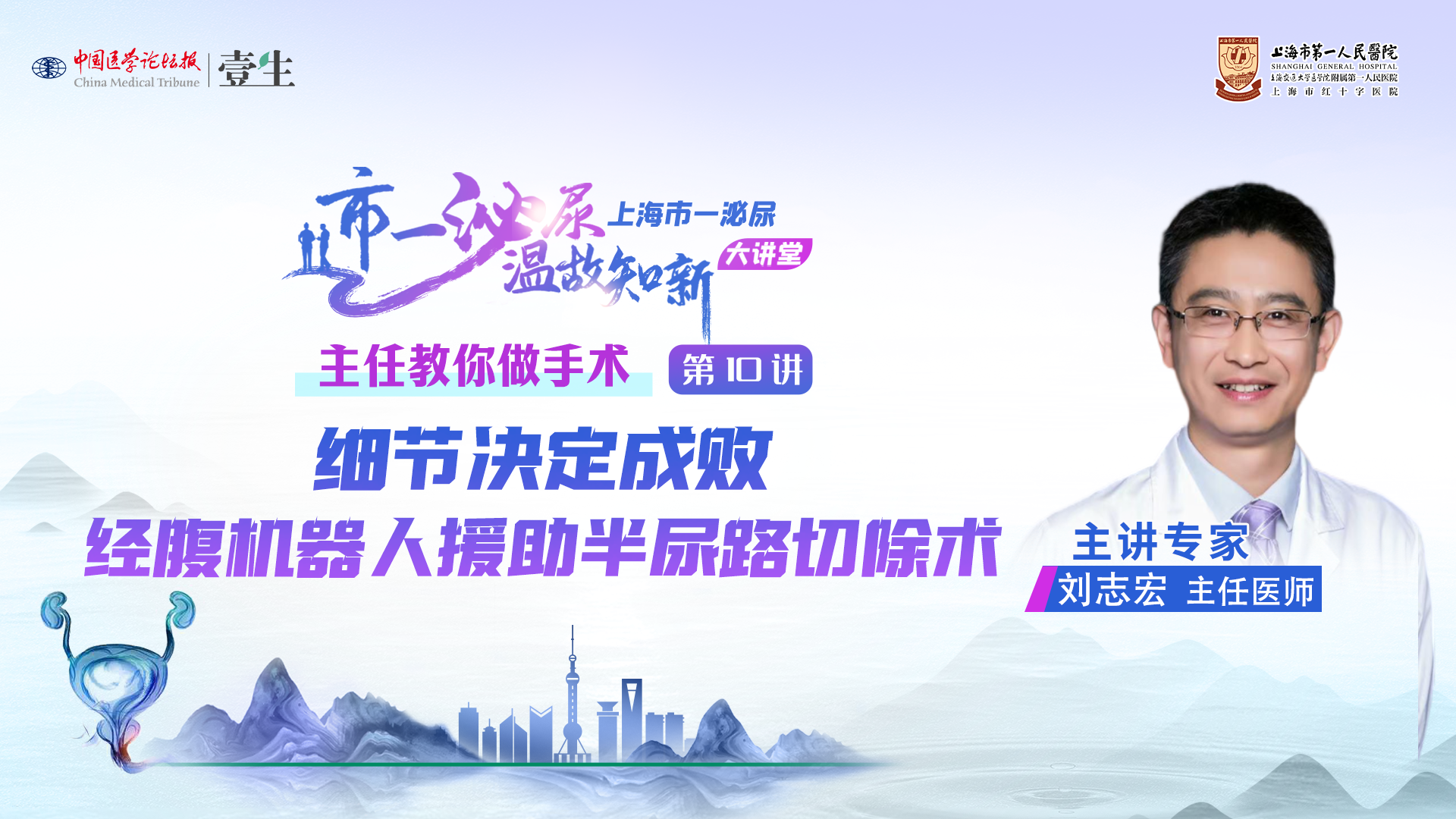 【温故知新·上海市一泌尿大讲堂】由上海交通大学医学院附属第一人民医院泌尿外科出品,聚焦泌尿外科领域热点与前沿的临床诊疗议题。10月起,特开设“主任教你做手术”专题系列课,由资深专家亲授,围绕泌尿外科经典手术中的难点与关键步骤,进行系统剖析与实操解析,助力临床医师提升手术技能、优化诊疗策略。每周一晚19:00于壹生平台独家直播,敬请关注!【本期讲者】刘志宏 主任医师【本期主题】半尿路切除术是治疗上尿路尿路上皮癌(UTUC)的金标准,经腹入路机器人辅助半尿路切除术具有手术时间短、术中不需要更换体位、空间暴露好、保留女性生殖血管等优点。本期【主任教你做手术】将由刘志宏教授为大家深度剖析“女性经腹入路机器人辅助半尿路切除术”的手术步骤、操作要点和细节优化,一起来把经典的手术做精做细。