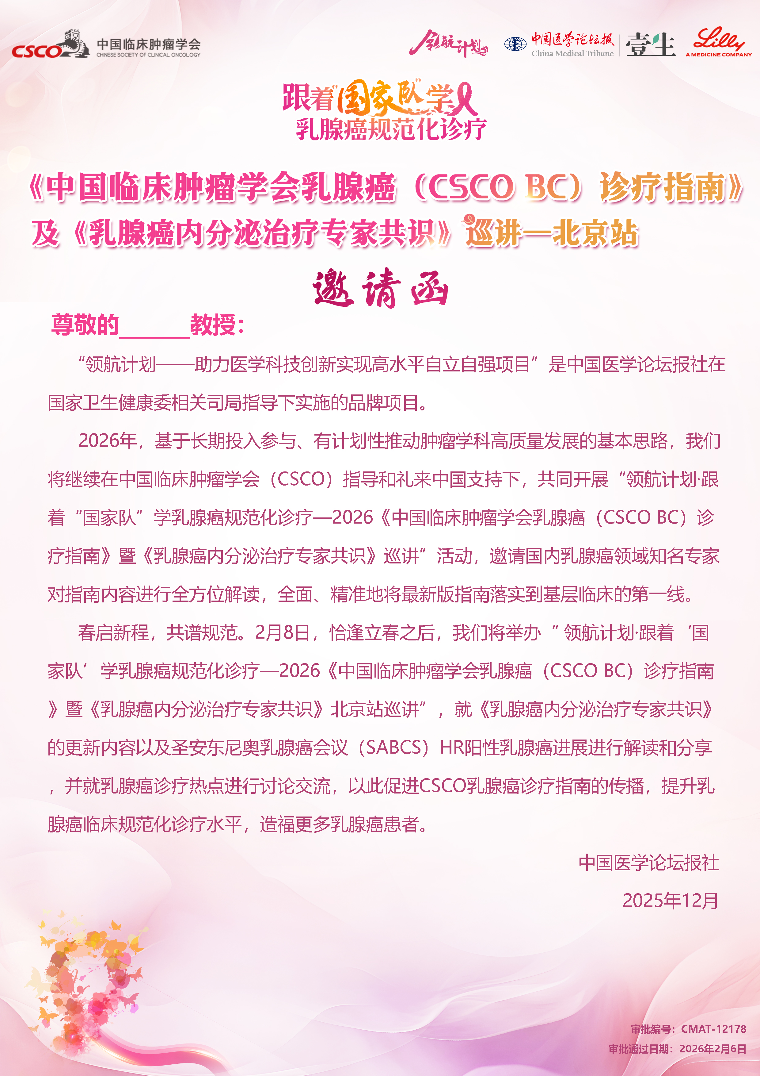 壹生大学2026年CSCO BC 诊疗指南暨《乳腺癌内分泌治疗专家共识》巡讲-北京站