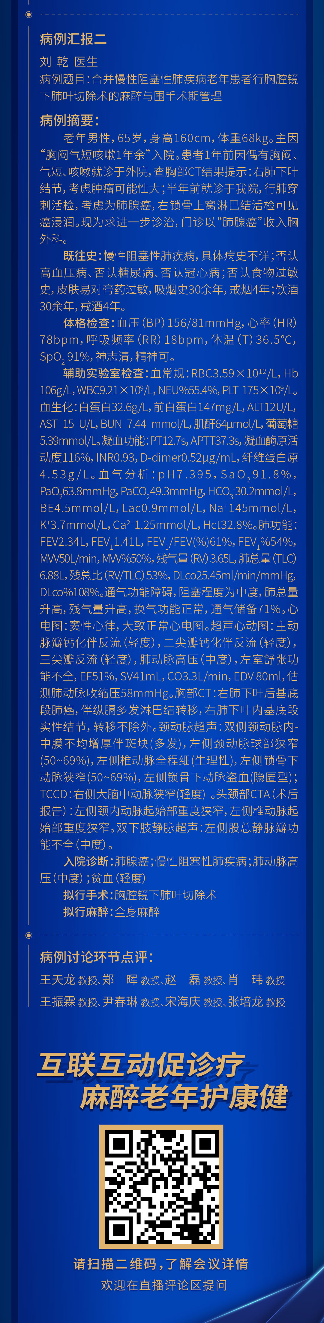 壹生大学老年麻醉与围手术期管理病例云查房(第87期)