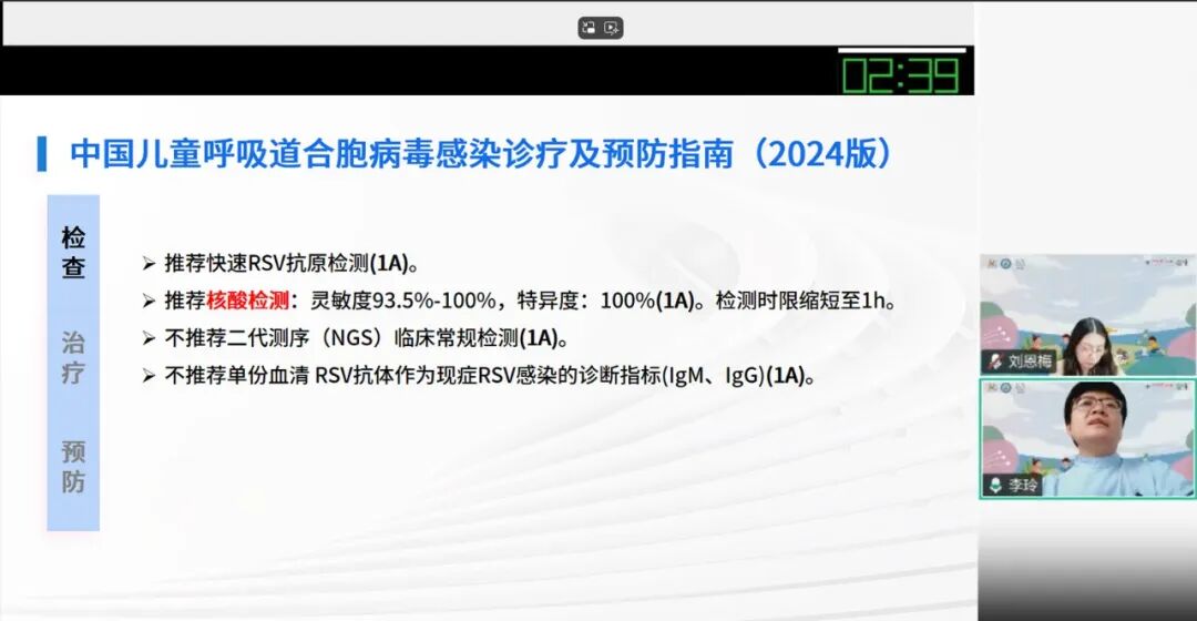 “病例分享时间把握好,对病例剖析透彻,通过文献查阅和指南参考详细描述了RSV感染对患儿带来的危害。”此外,刘教授对病例提出不同的看法,认为患儿不是单纯 RSV 感染,可能是混合感染,后续随访很重要。