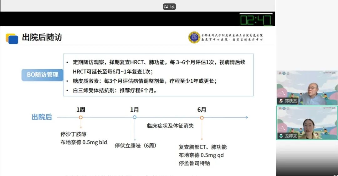 龙医生的PPT 制作精美,病例介绍清楚完整,诊治过程顺利。由于该病例住院时间短,郑教授对BO诊断提出疑问,并询问BO常见临床表现和体征。