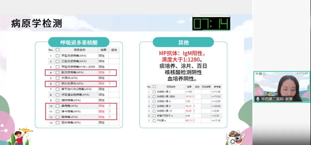 张教授与吴医生探讨了病人的关键问题是感染还是塑形及炎症反应,并强调了多重病原体感染后多多重核酸检测的重要性。