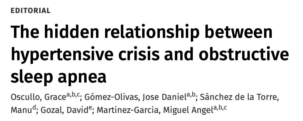因此,作者认为,在获得更有力的科学证据之前,原发性高血压危象患者——尤其是反复发作的患者——应接受睡眠诊断检查,以评估是否存在作为促发因素的OSA。