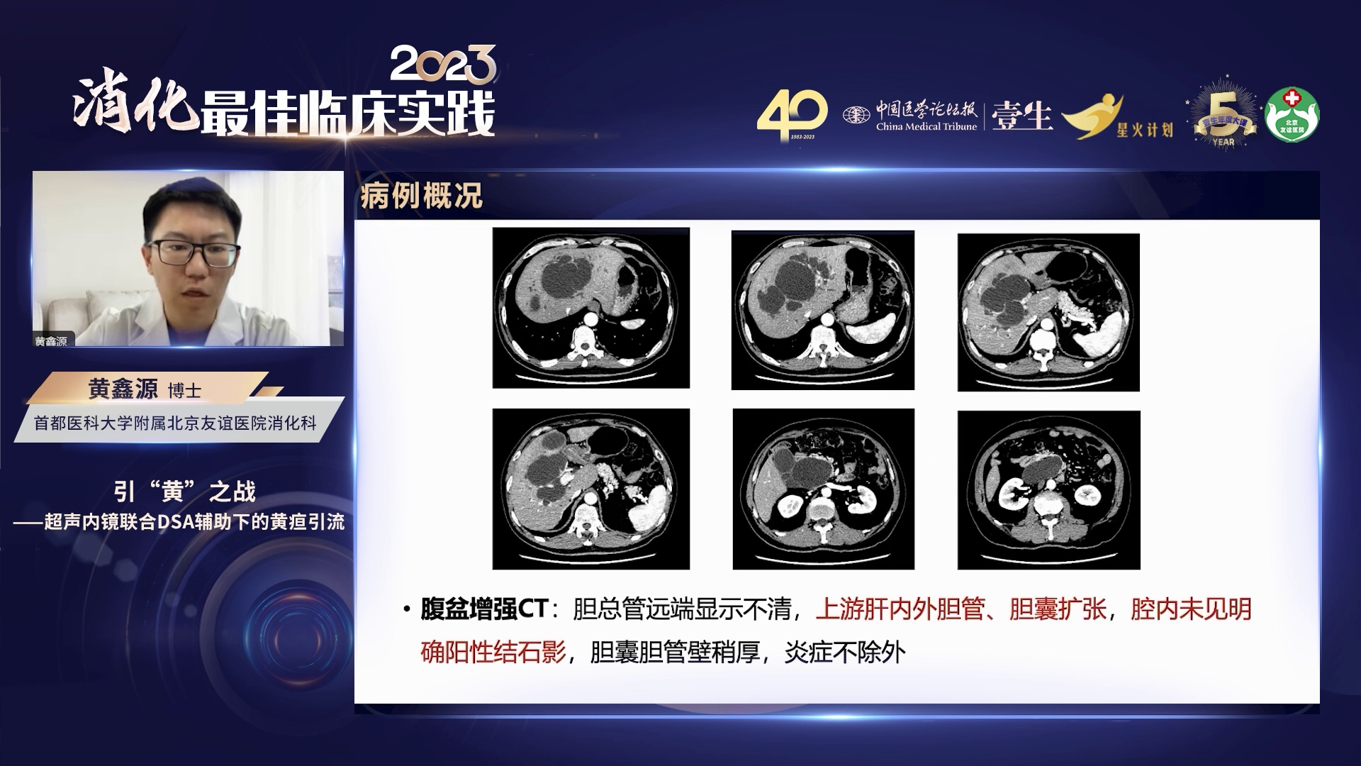 1年前患者出现食欲减退,生化显示总胆红素升高。10天前,皮肤和巩膜黄染、小便颜色加深,伴有乏力、反酸、皮肤瘙痒。生化检查示胆红素较前明显升高,且以直接胆红素为主。