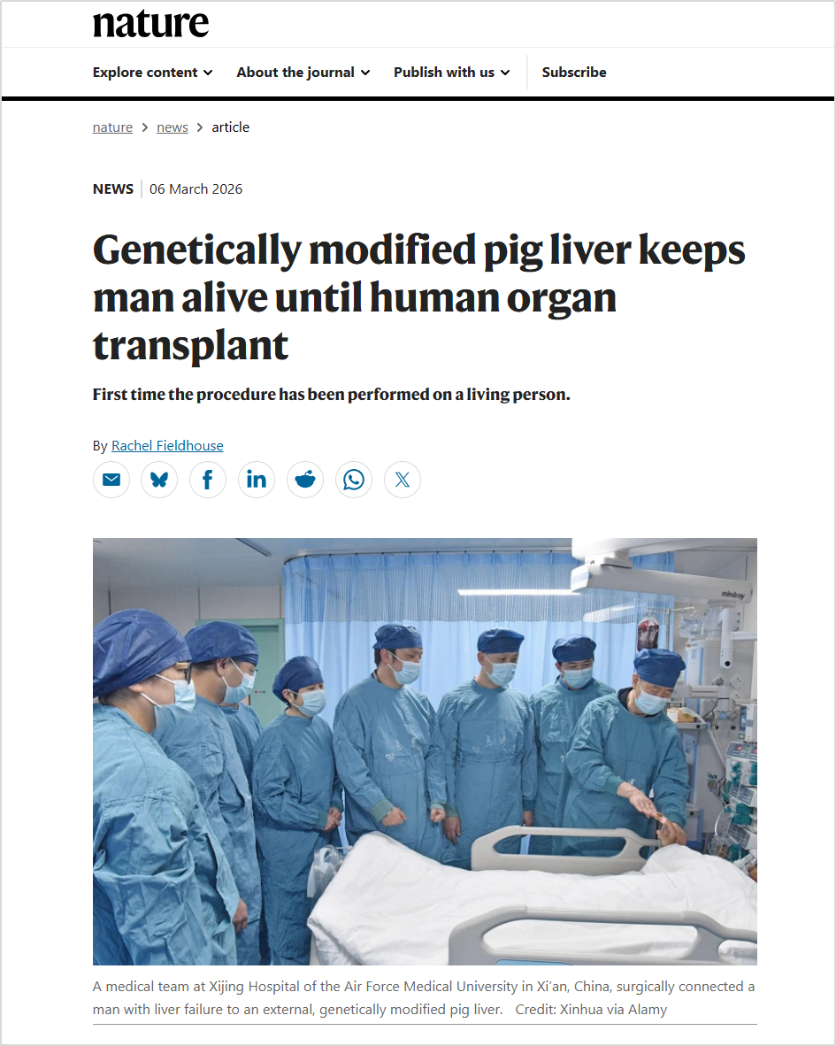 文中提到,异种移植是解决器官短缺困境的重要途径。目前中美两国已有至少12人接受猪器官移植,其中2例由西京医院专家团队完成,相关临床试验正在推进。