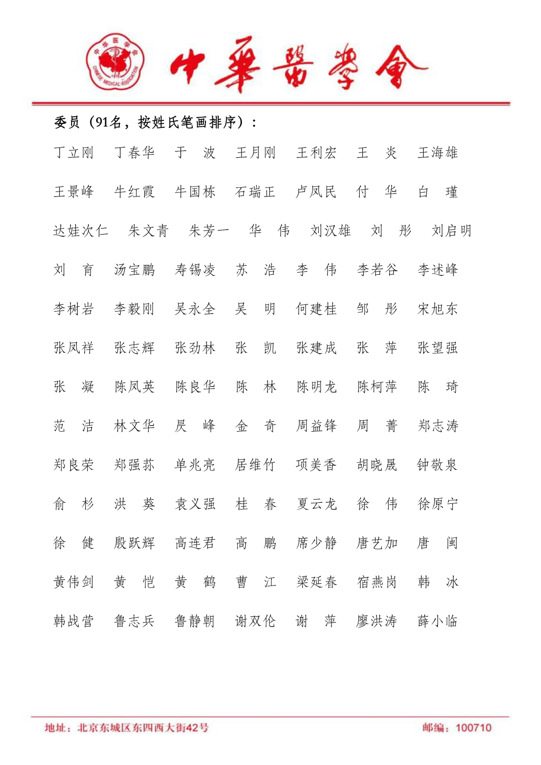 中华医学会心电生理和起搏分会第九届委员会常务委员共30名,委员共91名。具体如下:
