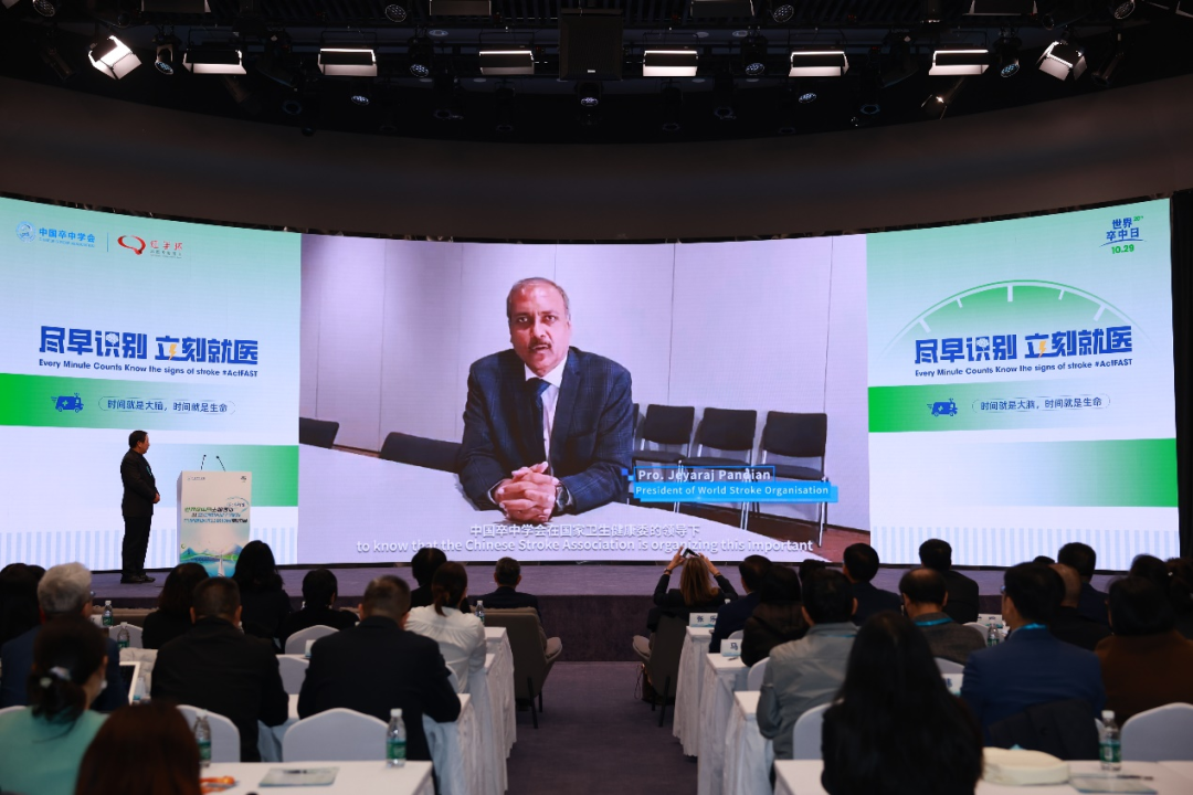 世界卒中组织(WSO)主席Jeyaraj Pandian教授通过视频致辞,呼吁全球协作加强卒中防控。