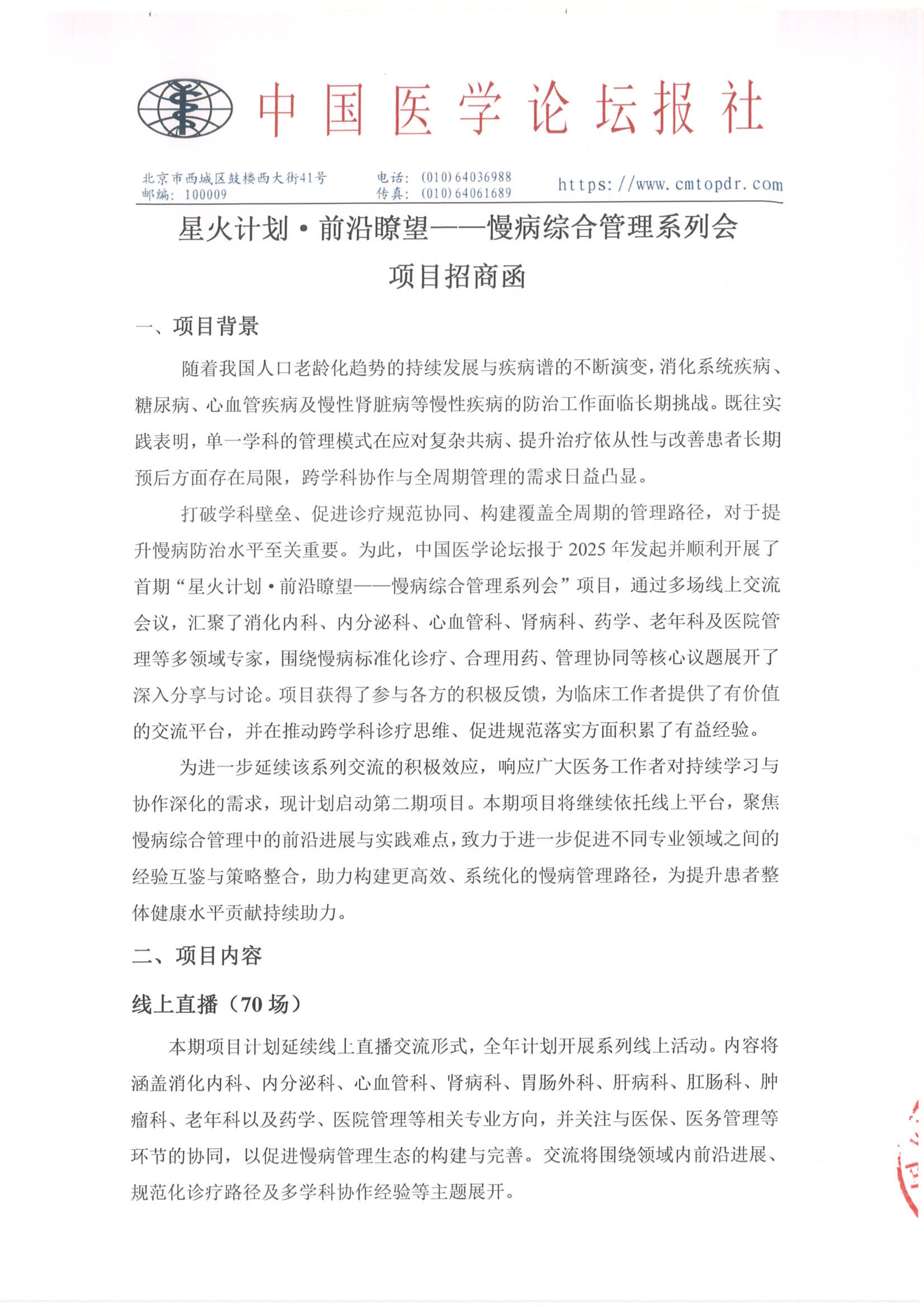 【招商函】星火计划·前沿瞭望——慢病综合管理系列会(二期)
