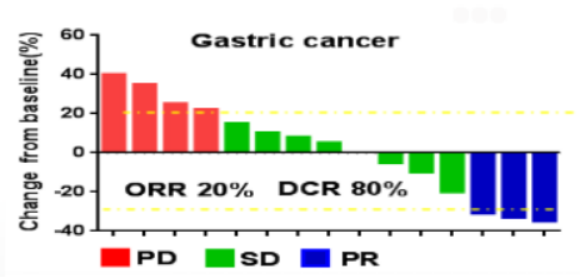 双艾组合结直肠癌有效率为30%,DCR率为80%。其中含一例MSI=H的患者。