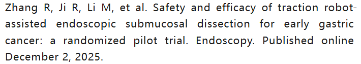 作为首个探讨牵引机器人辅助ESD的临床随机对照试验,本研究为FASTER系统(已获NMPA批准)在真实手术环境中的安全性与有效性提供了初步的、较高级别的临床证据。