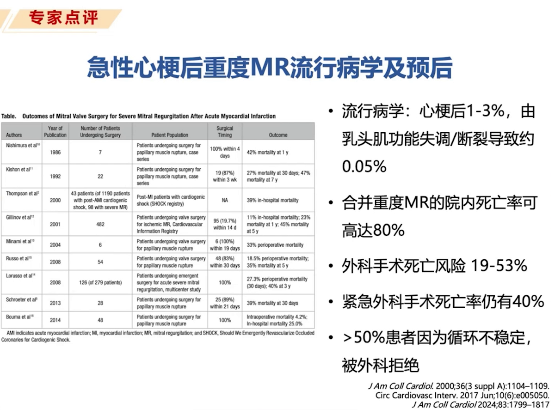 传统上,急性心梗合并二尖瓣腱索断裂需急诊外科手术(瓣膜修复或置换),但围术期死亡率高达19%-53%,许多患者因血流动力学不稳定而失去手术机会。经导管二尖瓣修复术(如MitraClip)具有创伤小、无需体外循环、手术时间短等优势,特别适用于本例这样的高龄、多脏器功能不全、外科手术禁忌的高危患者。最新研究和指南已开始推荐将其作为此类患者的重要治疗选择。