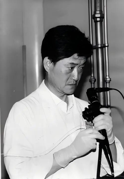 年轻时的于中麟教授在操作消化内镜