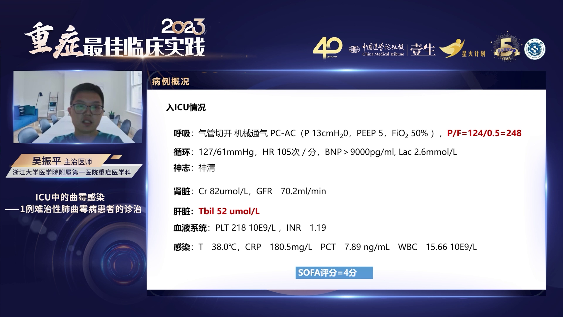 伏立康唑血药浓度不足:2017年欧洲指南推荐危重症病人血液伏立康唑谷浓度范围为2-6 mg/L,本病例入院第一次检测伏立康唑浓度为4.8 mg/L,达指南标准,此依据不充分。