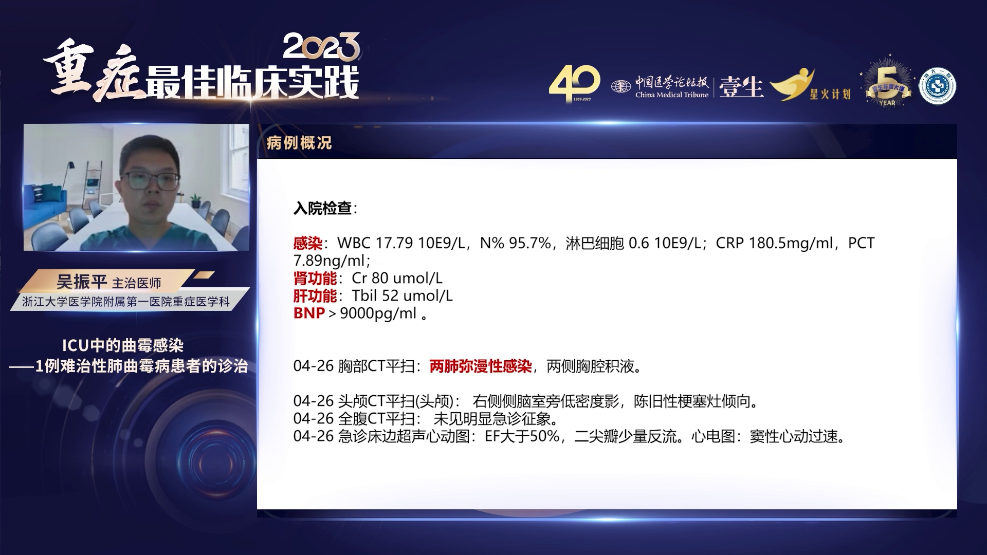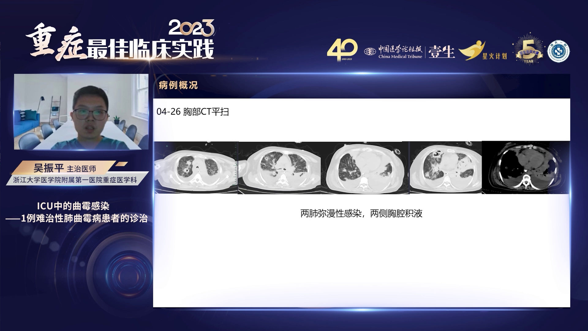 57岁女性农民,因“咳嗽咳痰伴发热1个月,反复发热半月余”于4月26日急诊入浙江大学医学院附属第一医院重症医学科。