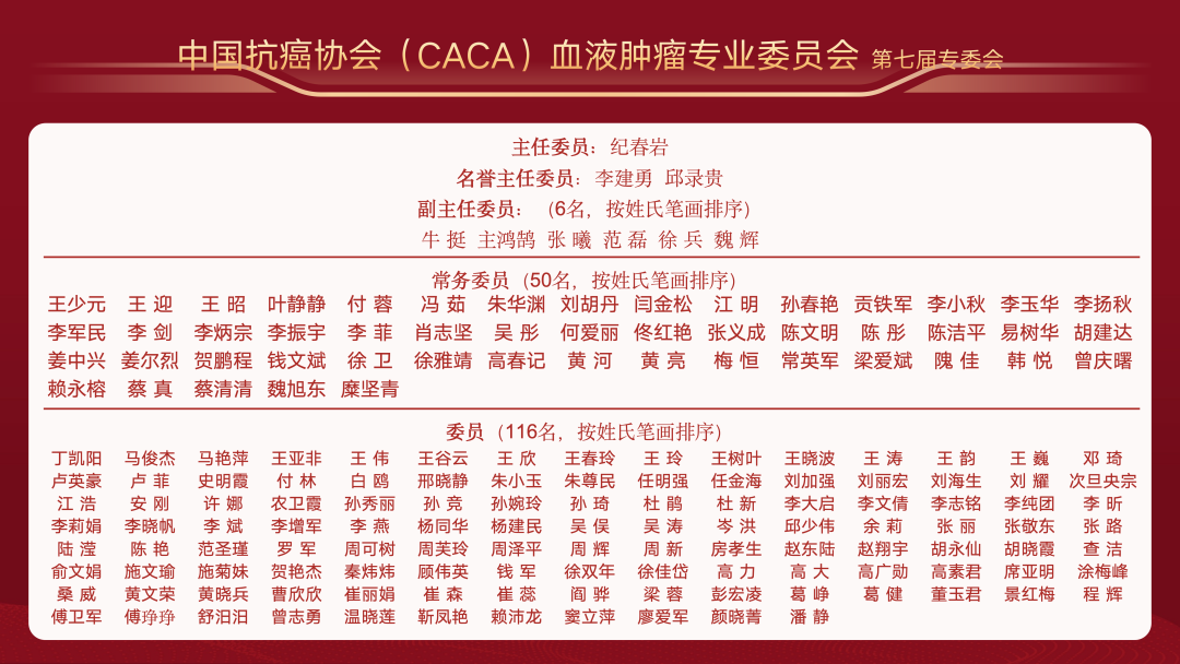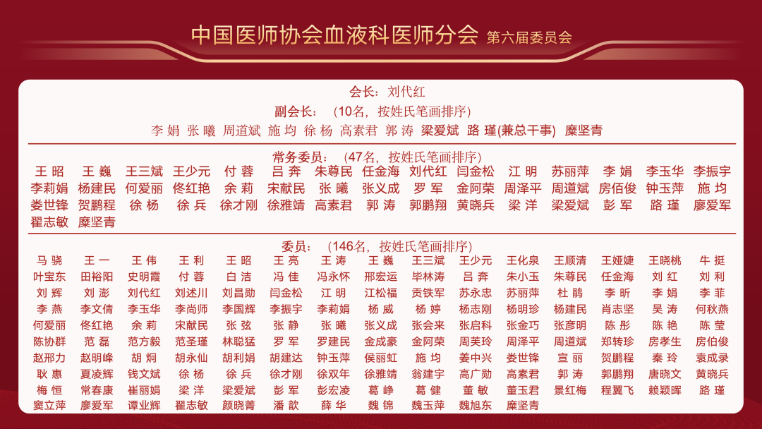 中国工程院院士、国家转化医学研究中心主任陈赛娟,中国工程院院士、国家血液系统疾病临床医学研究中心主任、北京大学血液病研究所所长、北京大学人民医院血液科主任黄晓军,中国工程院院士、中国医学科学院血液病医院(中国医学科学院血液学研究所)所院长、血液与健康全国重点实验室主任、中国医学科学院天津医学健康研究院执行院长、细胞生态海河实验室常务副主任程涛共同担任大会主席并送上寄语。
