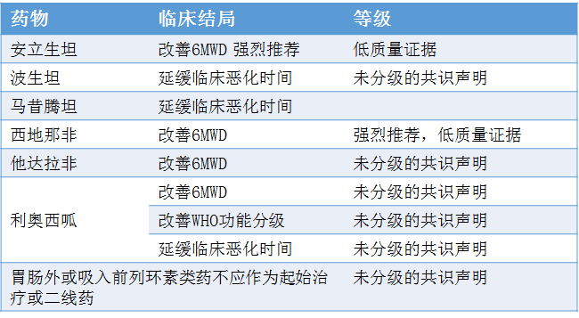 表1 未经治疗的WHO功能Ⅱ级成人肺动脉高压患者的治疗推荐