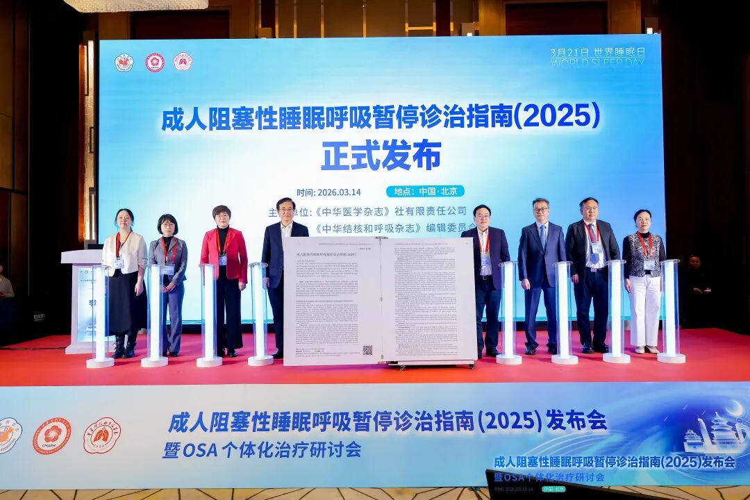 在第26个世界睡眠日即将到来之际,2026年3月13—14日,由《中华医学杂志》社有限责任公司、《中华结核和呼吸杂志》编委会主办的“成人阻塞性睡眠呼吸暂停诊治指南(2025)发布会暨OSA个体化治疗研讨会”在北京圆满召开。来自全国睡眠医学、呼吸病学及相关领域的众多专家学者齐聚北京,围绕新版指南发布、OSA个体化诊疗策略展开深入研讨与交流。