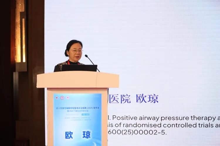 张立强教授主持下,欧琼教授分享了气道正压通气(PAP)治疗与OSA患者全因死亡率和心血管死亡率关系的研究进展。报告基于近年来高质量荟萃分析结果,系统梳理了PAP治疗在降低全因死亡率和心血管死亡风险方面的证据基础。