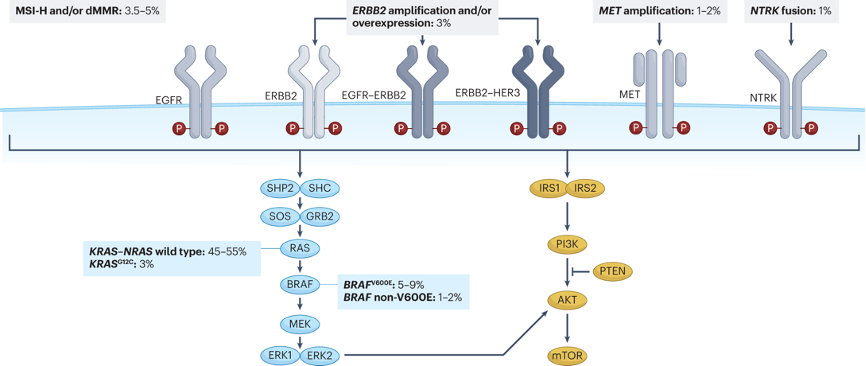 (图1:结直肠癌主要治疗靶点及其突变率)
