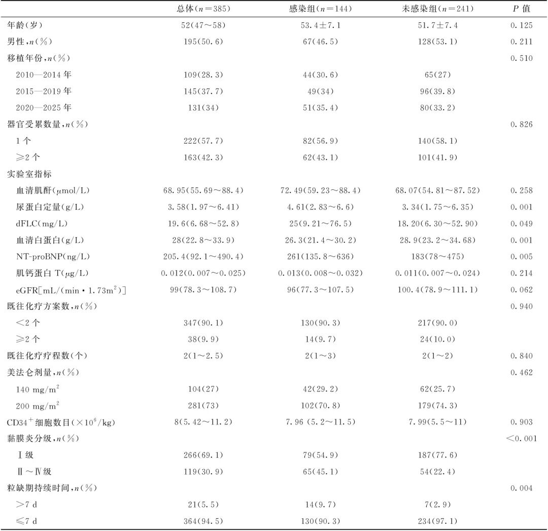 研究对象 纳入2010年3月至2025年3月在国家肾脏疾病临床医学研究中心行ASCT的385例AL型淀粉样变性患者,分析从干细胞回输后3个月内发生感染的情况。