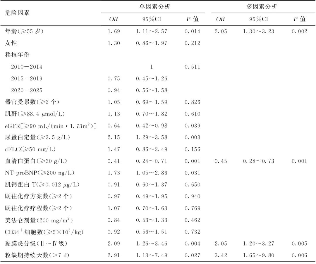 关键词 自体造血干细胞移植 系统性轻链型淀粉样变性 感染 危险因素