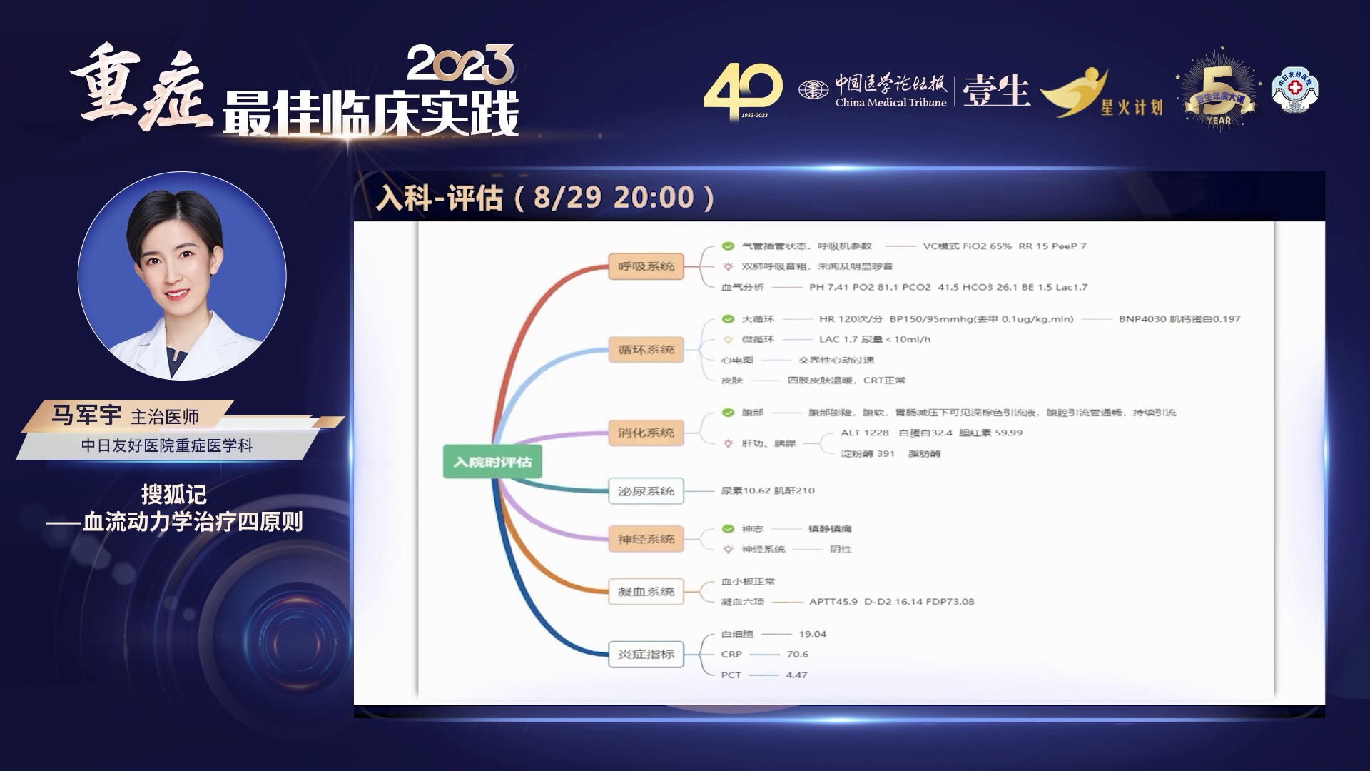 2) 目标与目的:确定治疗目的后,要用清晰目标控制临床治疗。对于该患者,目的是减轻右心前负荷、降低右心后负荷,针对左心考虑强心、抗心律失常或增加心输出量。具体到右心前负荷减少及后负荷降低,需通过CVP监测、超声监测下腔静脉宽度变异度及肝静脉血流等指标评估。治疗中采取负平衡策略,通过多种监测手段确保治疗效果。例如9月1号到3号,患者负平衡达18000毫升,同时监测静脉回流评分明显下降,但因第三间隙液体回流,利尿治疗不能停。在右心后负荷缓解方面,氧合趋稳时考虑SBT及拔管,通过SBT前后监测肝静脉反流情况评估肺动脉压缓解程度。