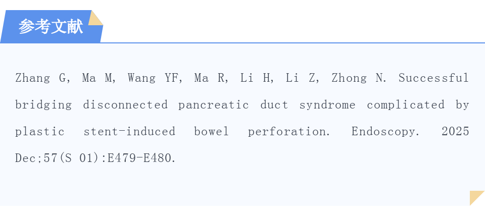 既往研究显示,长期塑料支架置入可有效管理DPDS并且严重并发症少,例如出血、穿孔等。