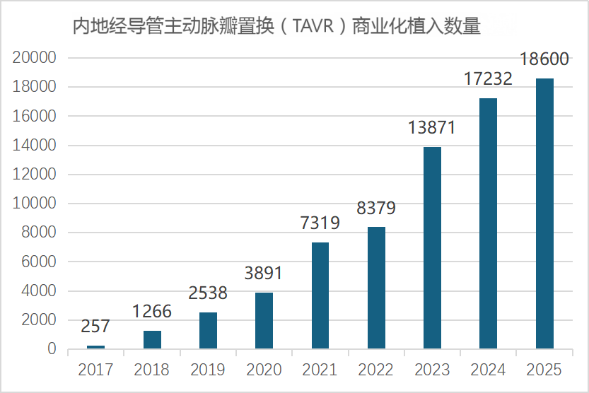 图2 2017—2025年内地经导管主动脉瓣置换商业化植入数量
