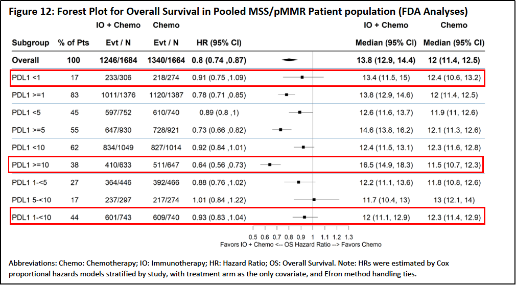 图4:3项III期研究中MSS/pMMR人群OS森林图(FDA分析)
