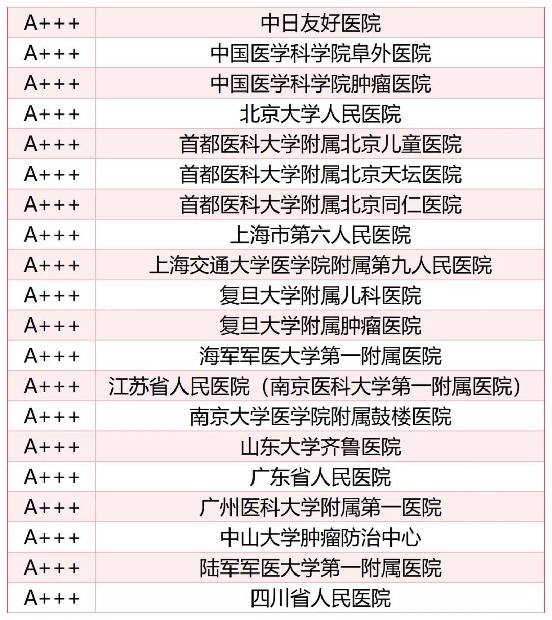 据悉,今年复旦版《中国医院综合排行榜》在各大医院名次的“表达”方法有了重大改变,百家医院由原来的第1至第100名顺序排名,改变为不直接排名。分为A + + + +、A + + + 、A + + 、A + 和A 五个等级,每一等级20家医院,A + + + +为最高等级。医院排名先后按行政大区编码(华北、东北、华东、华中、华南、西南、西北)排列;同等级排名不分先后,院名笔画少为先。