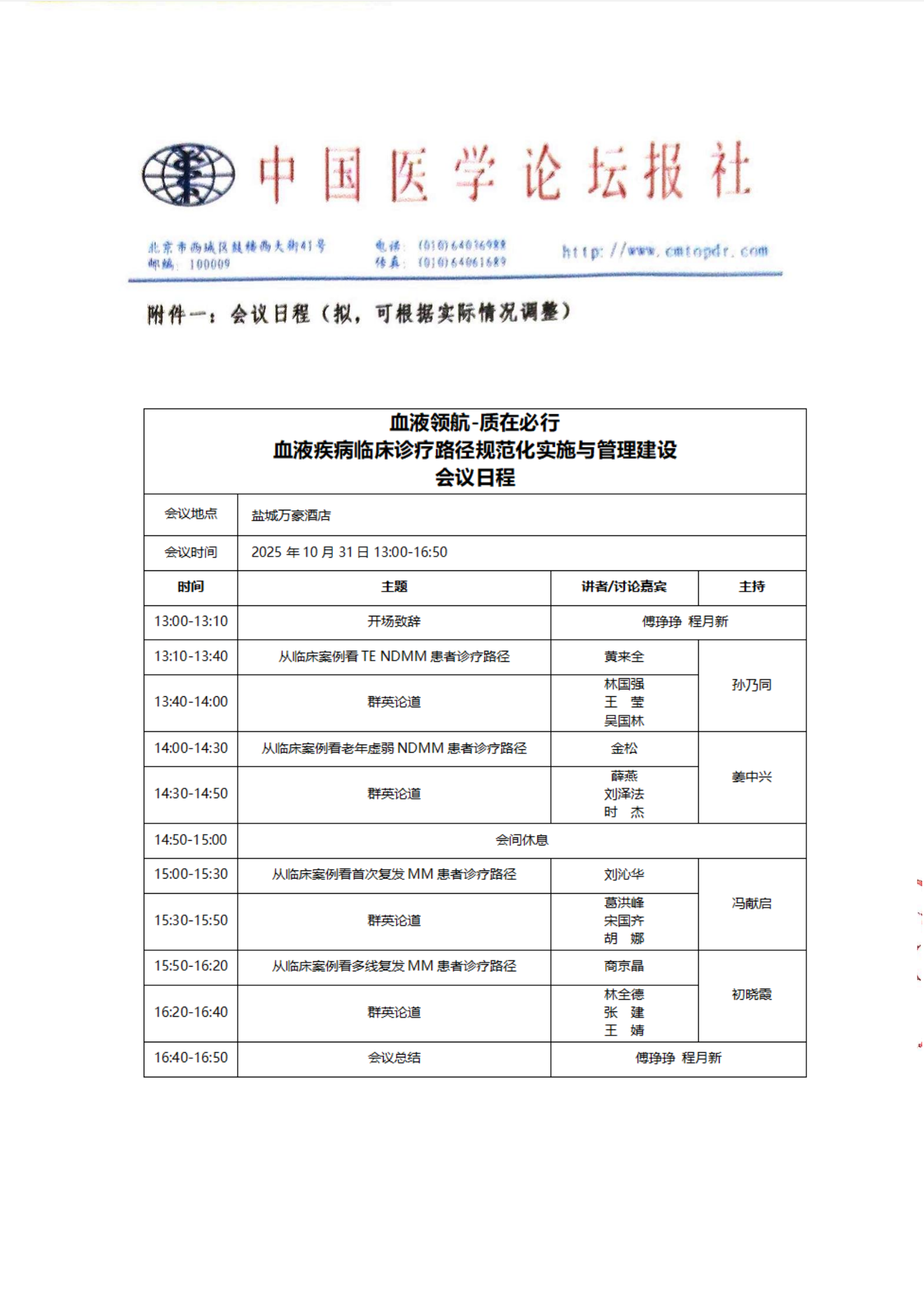 【招商函】血液领航 质在必行——血液疾病临床诊疗路径规范化实施与管理建设项目【10月31日 盐城】