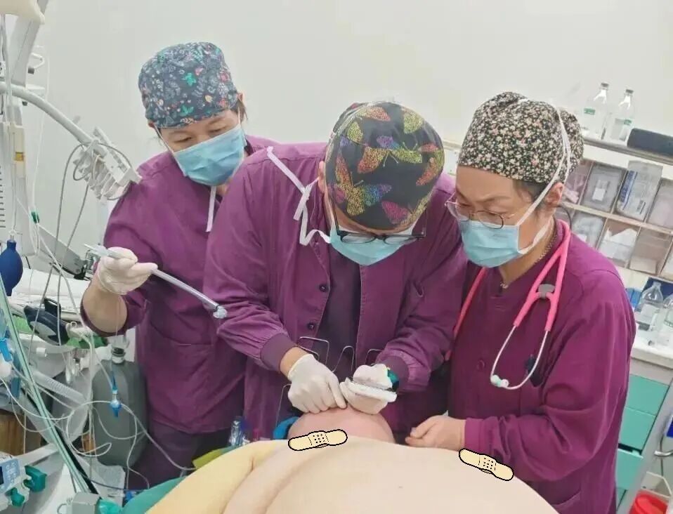 麻醉科蔡淑女、董敏峰两位主任进行术前评估,根据体型特征克服高难度气道插管,确保术中生命体征平稳,术后安全复苏,全程将血氧浓度稳定在安全水平。