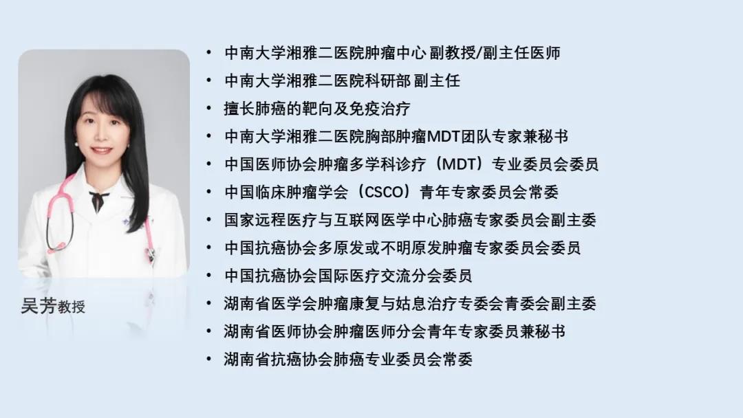 那么,结果究竟如何?敬请期待吴芳副教授在WCLC2020的线上会议上为我们解答。除这一项展示外,吴芳副教授的两项壁报焦于肺癌的靶向及免疫的精准治疗。期待吴芳副教授在国际交流合作的舞台中,传递更多中国声音。