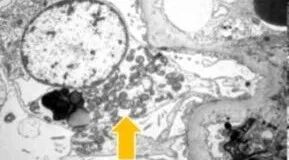 电镜提示线粒体或足细胞异常