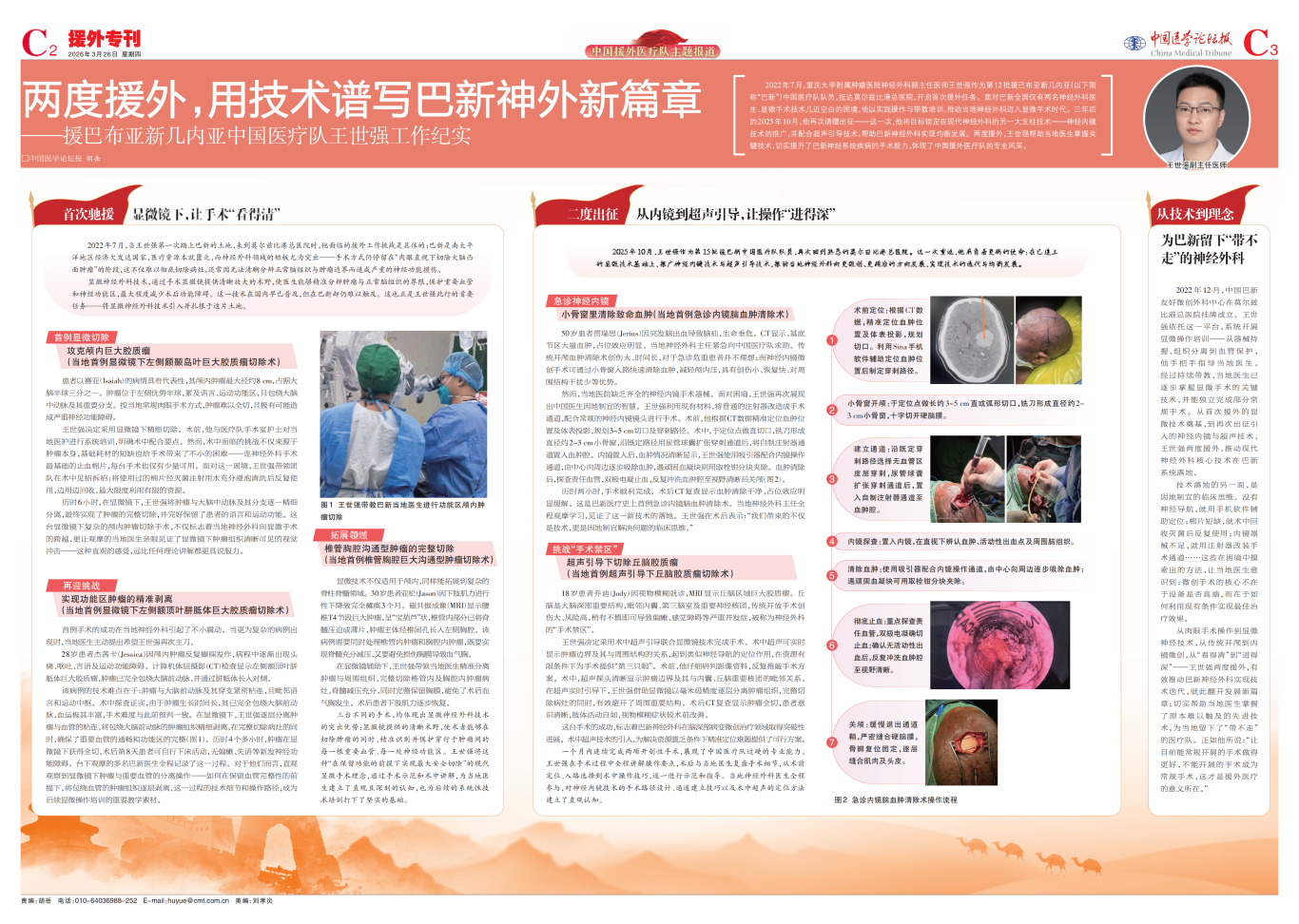 从肉眼手术操作到显微神经技术,从传统开颅到内镜微创,从“看得清”到“进得深”——王世强两度援外,有效推动巴新神经外科实现技术迭代,就此翻开发展新篇章;切实帮助当地医生掌握了原本难以触及的先进技术,为当地留下了“带不走”的医疗队。正如他所说:“让目前能常规开展的手术做得更好,不能开展的手术成为常规手术,这才是援外医疗的意义所在。”