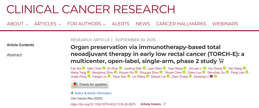 放射治疗是直肠癌器官保留策略的核心环节。复旦大学附属肿瘤医院放射治疗中心章真教授团队多年来聚焦直肠癌放疗与功能保护研究,通过精准的剂量投放与时序优化,为患者争取“非手术治愈”机会。最新发表于国际知名期刊《临床癌症研究》的TORCH-E研究,正是团队在该领域取得的重要突破——通过将短程放疗与化疗、免疫治疗高效结合,显著提升治疗效果,推动直肠癌治疗从“切除肿瘤”向“根治与保功能并重”迈进。