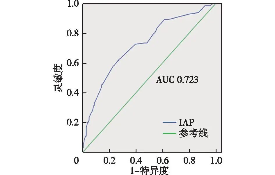 图1 IAP预测急性胰腺炎患者发生AKI的ROC曲线