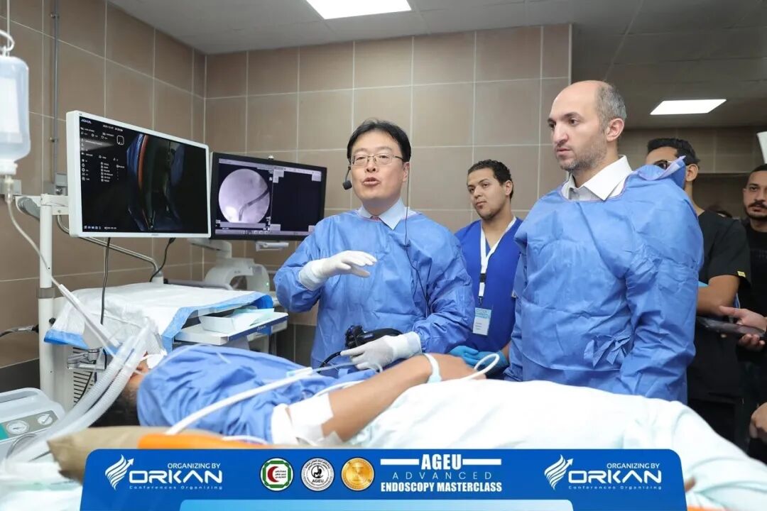 12月7—8日,作为本次交流的核心活动,AGEU国际高级消化内镜大师班在艾哈迈德·马希尔教学医院举办。这家始建于1954年的公立教学医院,是埃及公共医疗体系的重要支柱,其内镜科是埃及卫生部体系内规模最大、病例量最高的内镜中心之一,承担着全国大部分消化内镜学员的培训任务。但由于学员基数大、疑难病例多,当地师资力量和技术水平难以满足培训需求。