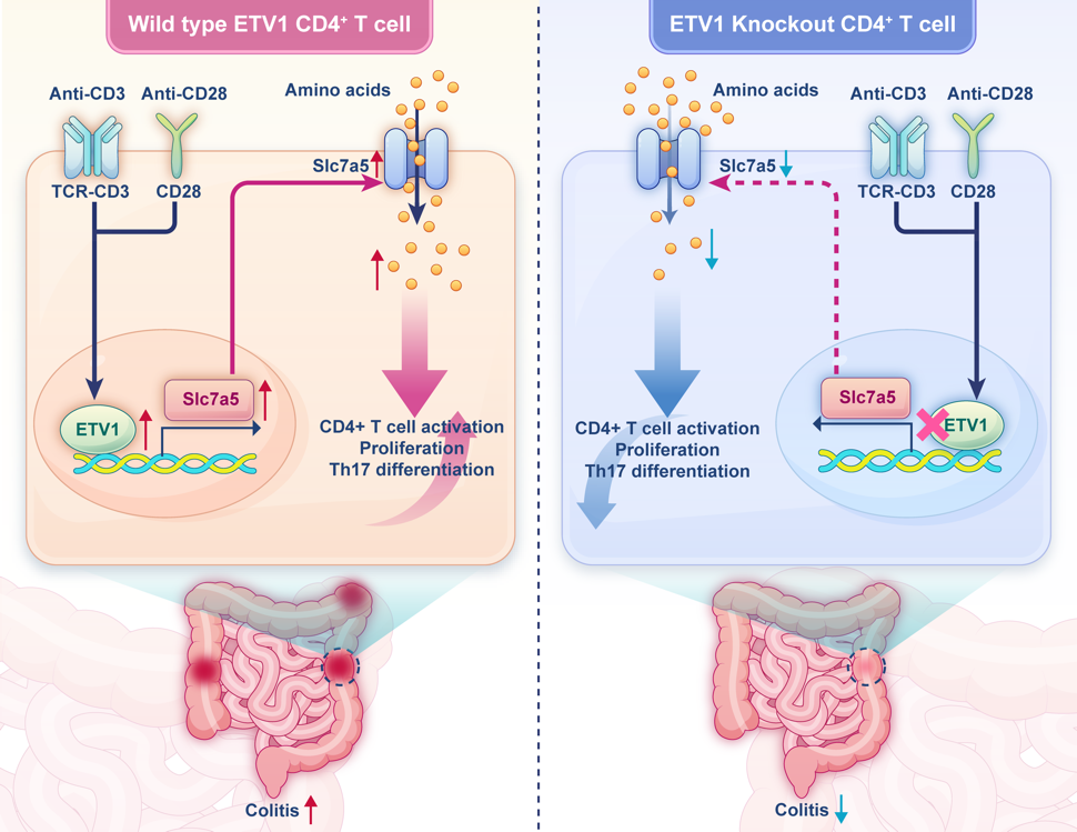 综上所述,该研究系统性地揭示了ETV1-SLC7A5轴是炎症性肠病中驱动致病性CD4+T细胞代谢与功能异常的关键通路。该发现为炎症性肠病提供了全新的精准治疗靶点,有望推动IBD治疗策略的突破性发展。