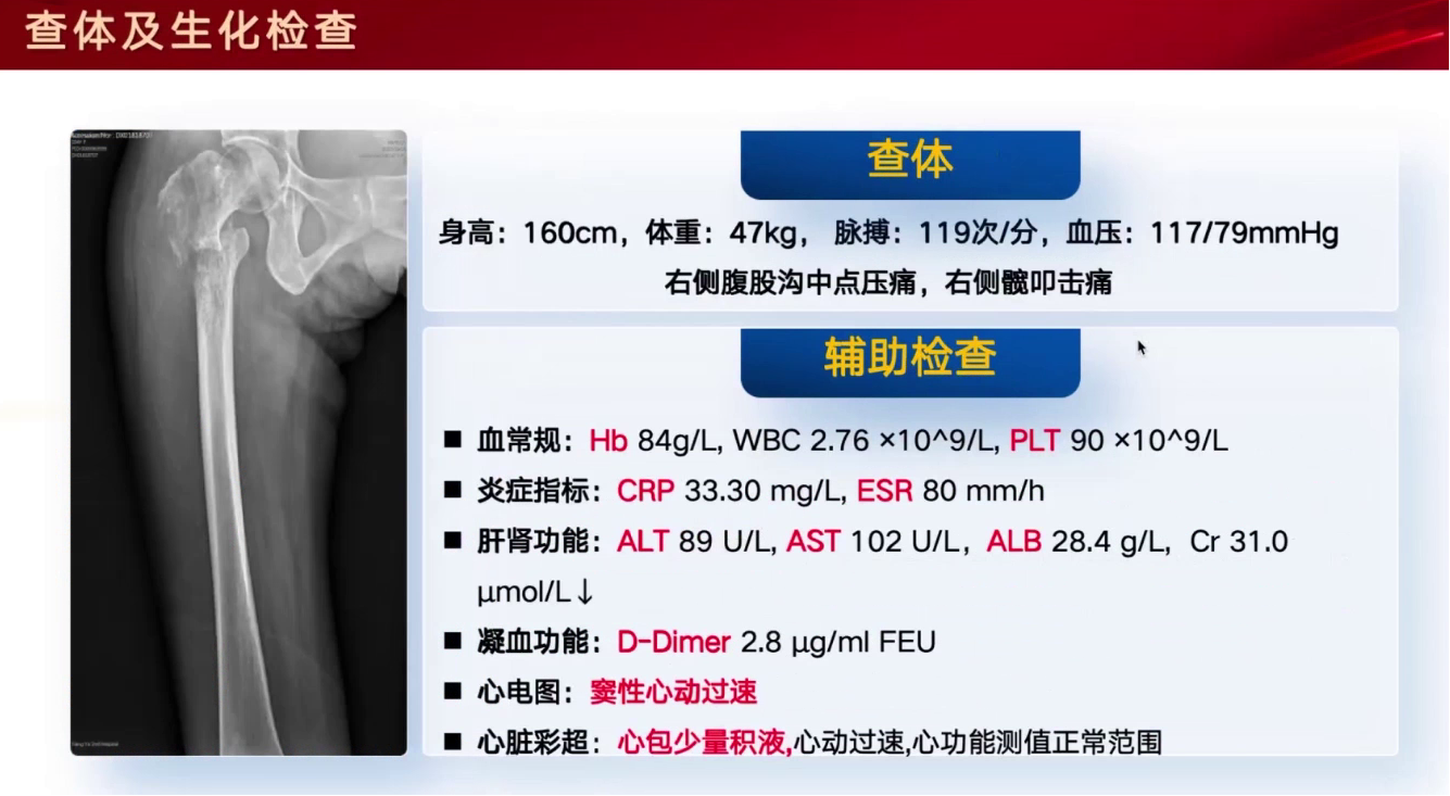 面对该患者,手术与否成为首要难题。病理性骨折带来严重疼痛、功能障碍,长期卧床增加感染风险,严重影响患者生活质量和生存期。然而,手术虽风险大,但术后可改善症状,满足患者心理需求,鼓励其以积极心态接受抗肿瘤治疗。患者和家属积极治疗的决心,促使多学科协作(MDT)成为保障手术安全有效的关键。