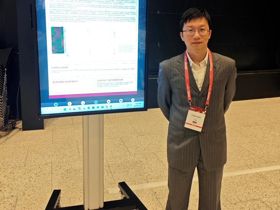 在电子壁报(ePoster)展示环节,郑重医生发表了题为“Comparing gene expression signatures of Niraparib, Olaparib treatment and PARP1 silencing in HRP ovarian cancer cells”的研究。该研究在分子水平研究了通过对尼拉帕利(Niraparib)、奥拉帕利(Olaparib)治疗以及PARP1基因沉默在同源重组修复(HRP)缺陷阴性卵巢癌细胞中的基因表达特征进行比较分析,PARP抑制剂的作用机制、探索潜在的耐药机制以及开发联合治疗策略提供了重要的理论依据。