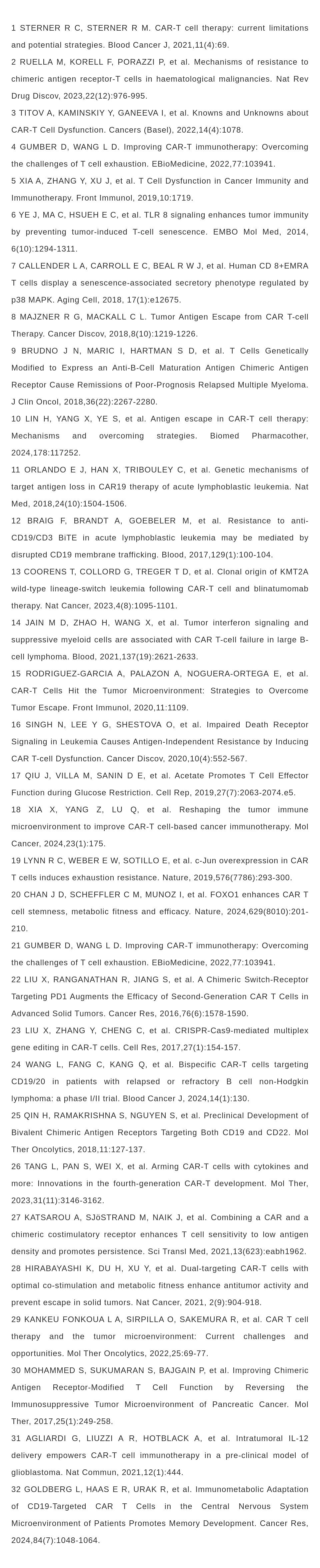 关键词 嵌合抗原受体T细胞 血液肿瘤 耐药机制 抗原逃逸 肿瘤微环境