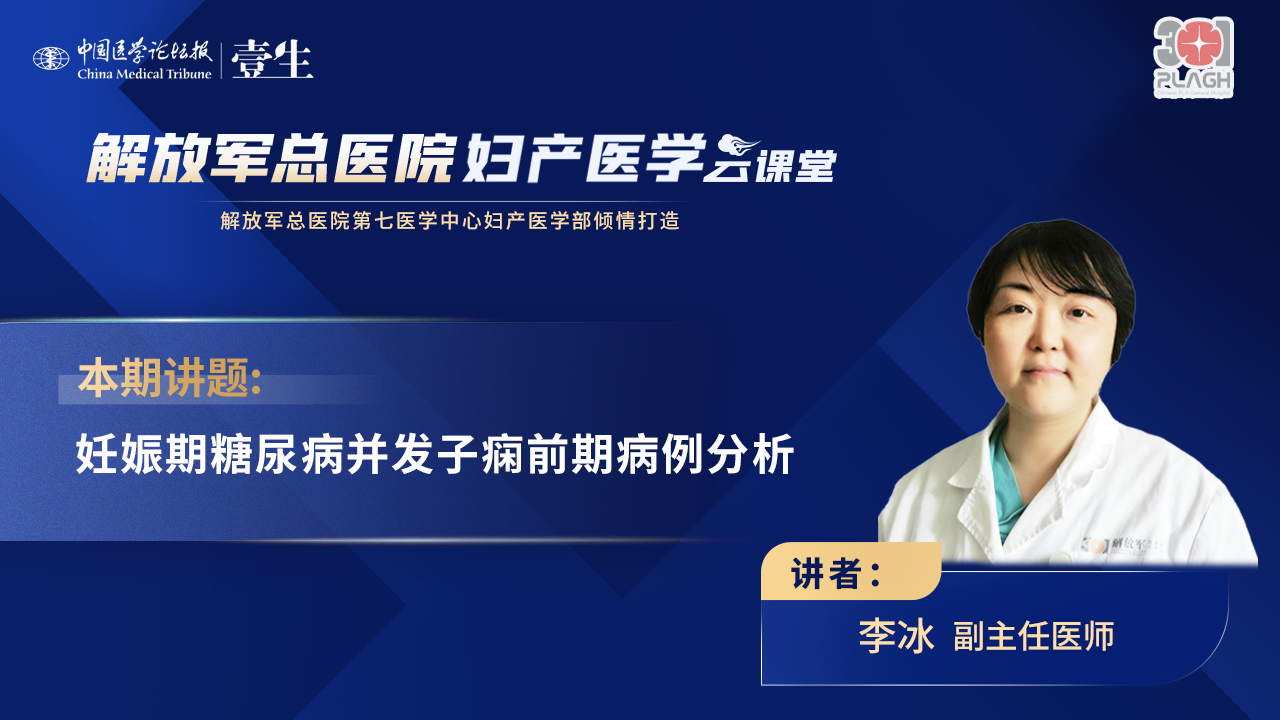 中国医学论坛报壹生妇产学院特邀解放军总医院第七医学中心妇产医学部专家团队,开设《解放军总医院妇产医学云课堂》系列专栏,每期选取妇产领域临床热点、难点话题,系统讲解妇产科疾病的诊治,梳理临床思维,规范诊疗行为。本周主题:妊娠期糖尿病并发子痫前期病例分析讲者:李冰 副主任医师解放军总医院第七医学中心妇产医学部