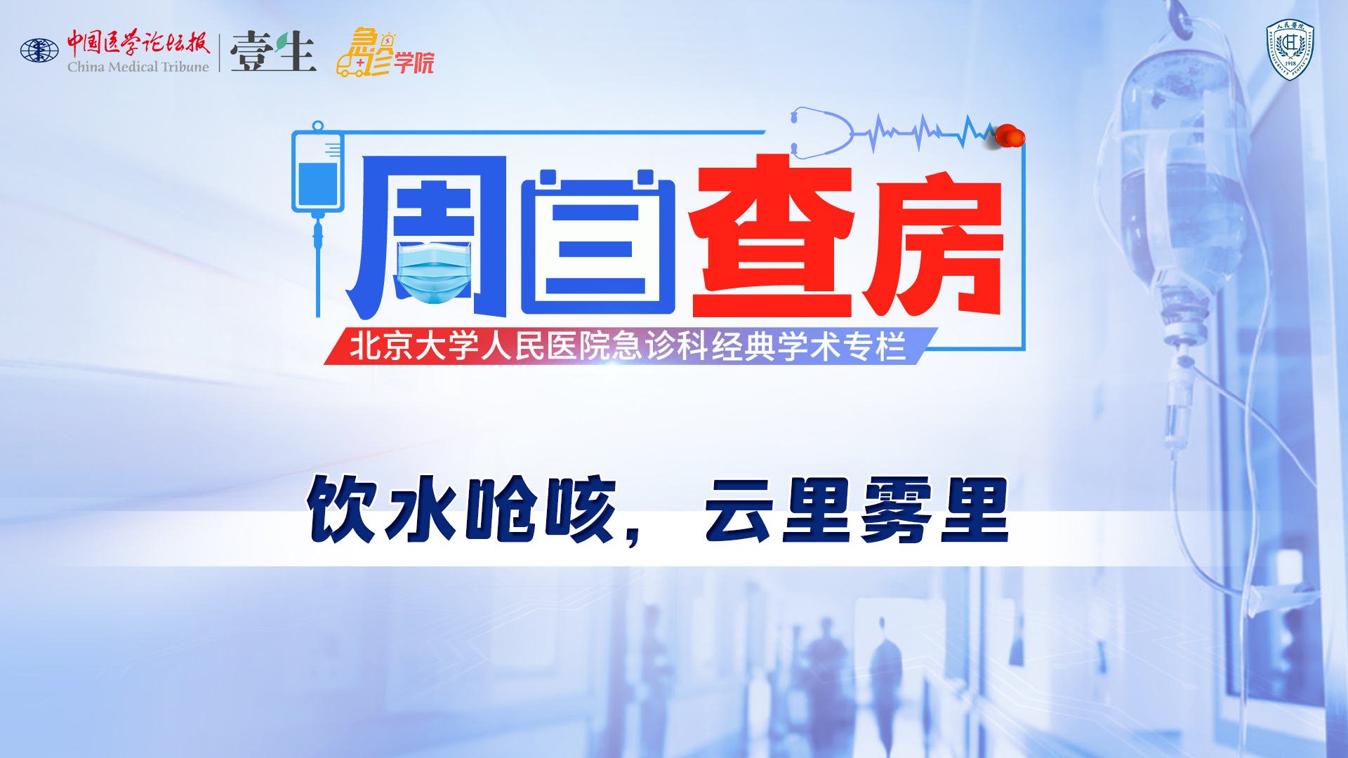 栏目介绍北京大学人民医院急诊科经典学术活动《周三查房》,自2020年11月起入驻中国医学论坛报·壹生急诊学院,经典病例结合急诊科核心知识点讲解,全部免费开放,供临床同道交流学习。更多内容,请安装壹生App,关注“急诊”频道。课程信息讲题:饮水呛咳,云里雾里讲者:孟庆国 医生讨论专家:缪邈,高伟波等上线时间:4月10日(周五)温馨提示:微信搜索“壹生急诊学院”,关注后免费获得上课提醒,精彩内容不错过。