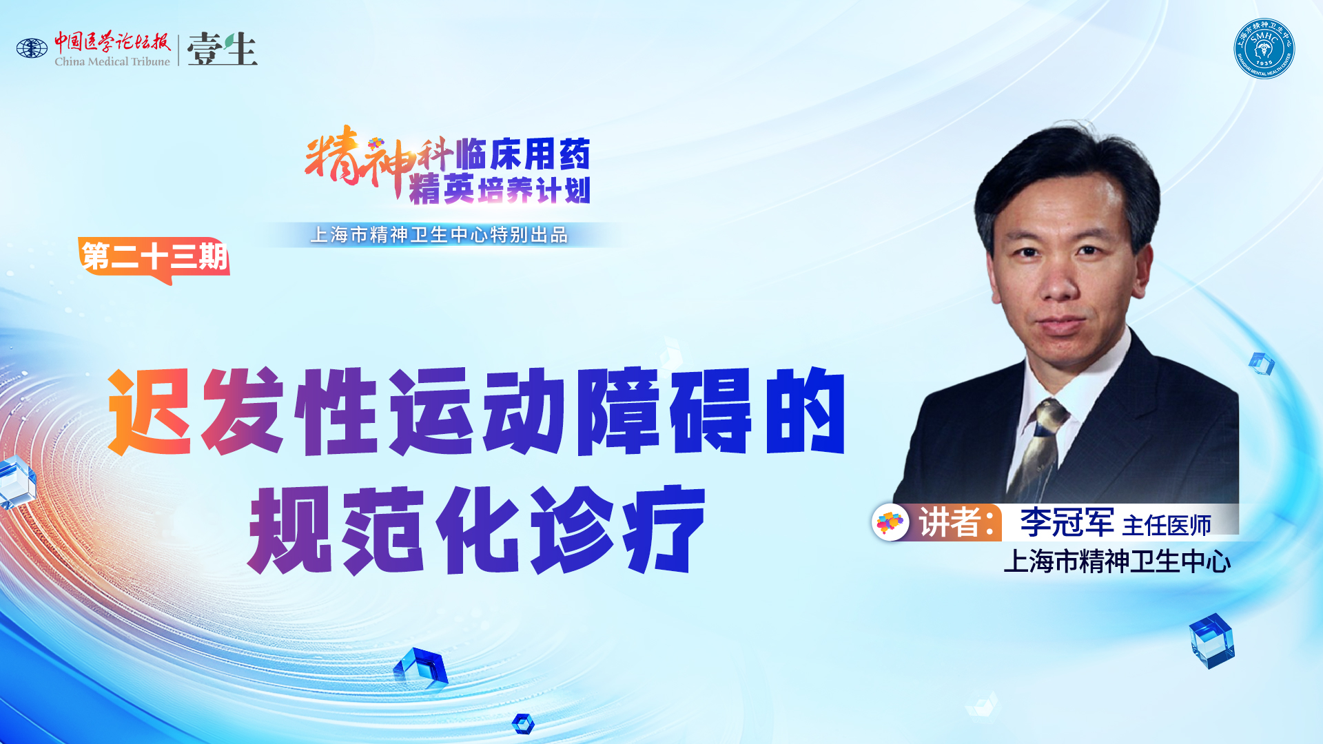 精神科临床工作中,如何科学诊断?如何精准用药?如何安全管理不良反应?由上海市精神卫生中心主导的《精神科临床用药精英培养计划》集结多位权威专家,全面讲解精神科诊疗核心技能与最新进展。课程内容涵盖精神科基础技能、常见障碍诊治、特殊人群治疗、药物合理应用及不良反应处理,为临床医生提供系统、实用的学习平台。本期讲题:迟发性运动障碍的规范化诊疗授课专家:李冠军 主任医师上海市精神卫生中心上线时间:1月28日 19:00系列课程安排:本课程由浙江大冢制药有限公司支持