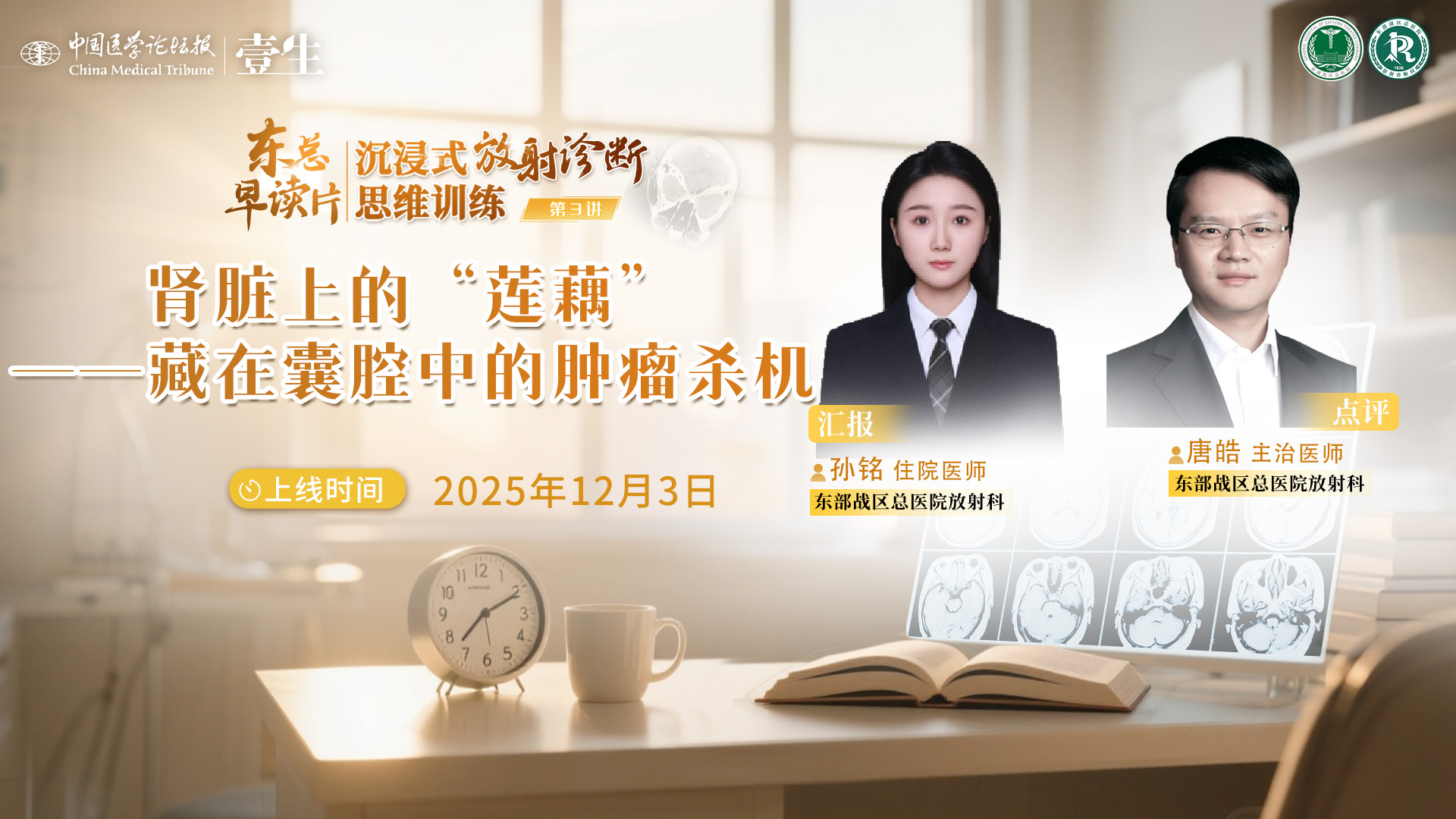 本期讲题:肾脏上的“莲藕”——藏在囊腔中的肿瘤杀机上线时间:2025年12月3日(周三)汇报专家:孙铭 住院医师 东部战区总医院放射科点评专家:唐皓 主治医师 东部战区总医院放射科